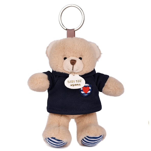 L'Ourson Célébration 25 Ans est l'icône de la douceur ! Ce petit ours au look marin sweat bleu marine, pattes rayées bleu/blanc est le compagnon parfait. Un craquant : son cœur rouge brodé et son médaillon collector 25 ans BabyNat’ en simili cuir. Accrochez-le partout pour une touche de tendresse assurée au quotidien.
