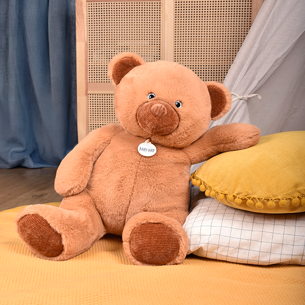 Avec sa belle couleur caramel et sa texture veloutée, cet ours séduit par son charme doux et enveloppant.